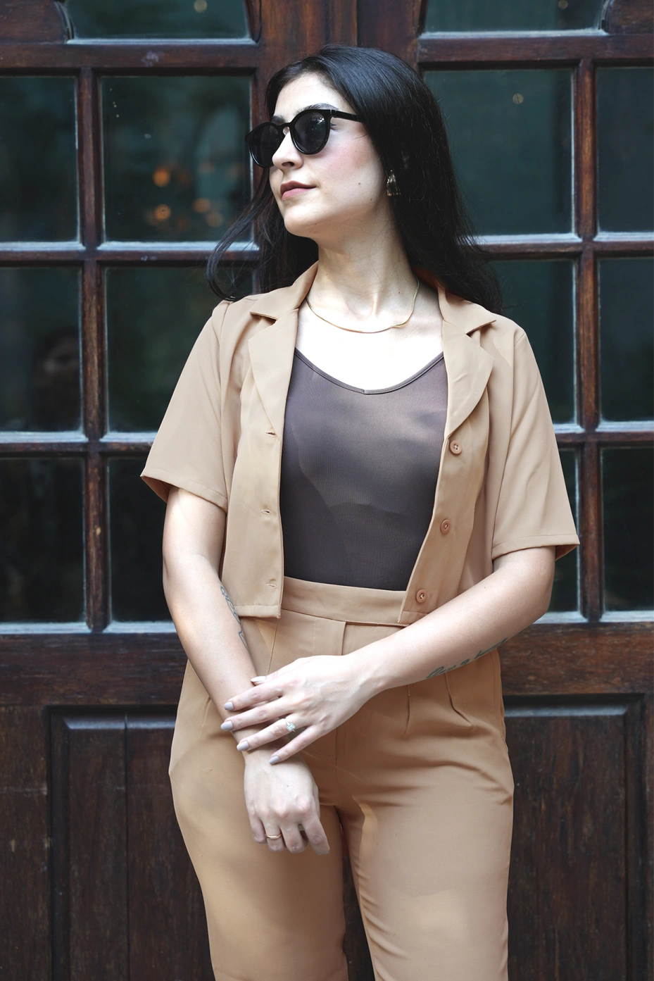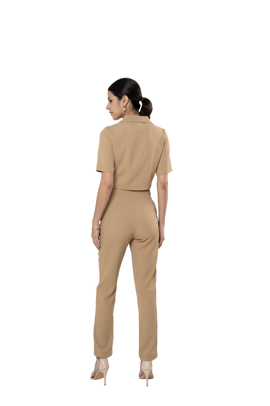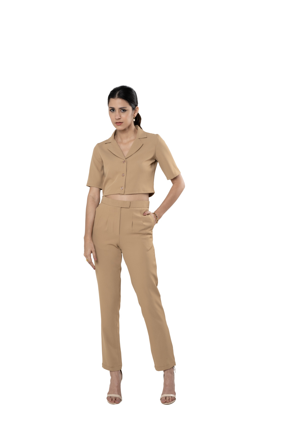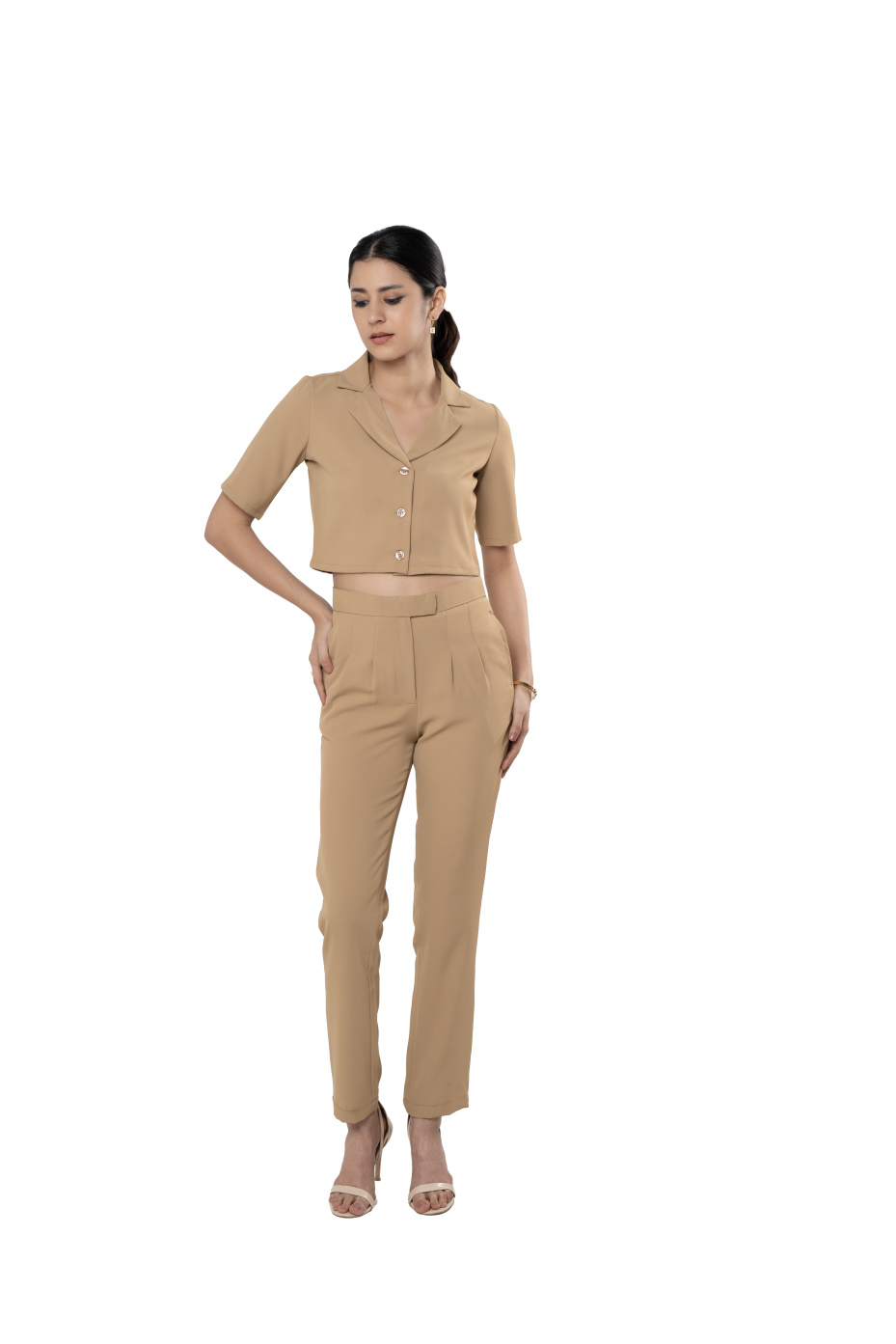 Are you looking for a great addition to your wardrobe? Look no more! Shop this attention-grabbing formal suit set. The top features a lapel collar, and three-quarter sleeves, whereas the bottom features side pockets, and a regular fit. Made from polyester-lycra fabric, it is lightweight, durable, and anti-wrinkle. Style this spotlight style by adding a block heel and pearl stud to complete the look.