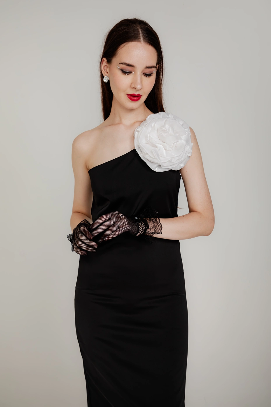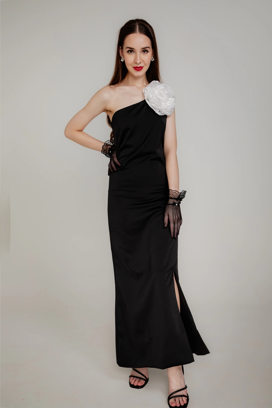 Ready to steal the show? This Black Corsage Maxi Dress, inspired by the enchanting northern lights, Aurora, is the perfect choice for your next glamorous evening affair. Featuring a sleek one-shoulder sleeve design and a dramatic maxi length, this dress is both elegant and striking. The delicate white corsage adds a touch of sophistication and femininity, while the luxurious satin fabric with Santoon lining ensures a smooth and comfortable fit. Perfect for a night of unforgettable moments, this dress flawlessly balances glam and gloss, making you the center of attention.