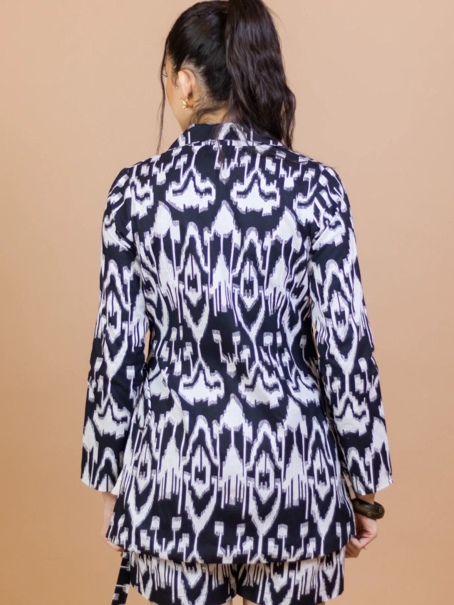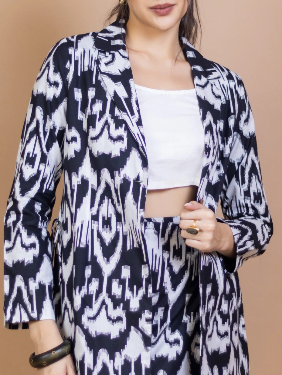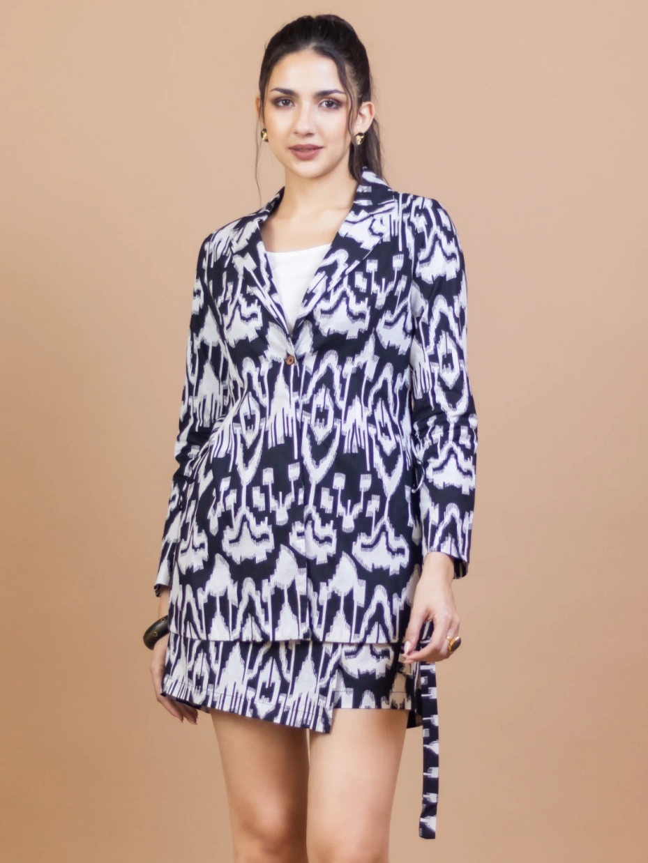 Black Ikat Blazer Skort Cotton Co-ord Set
