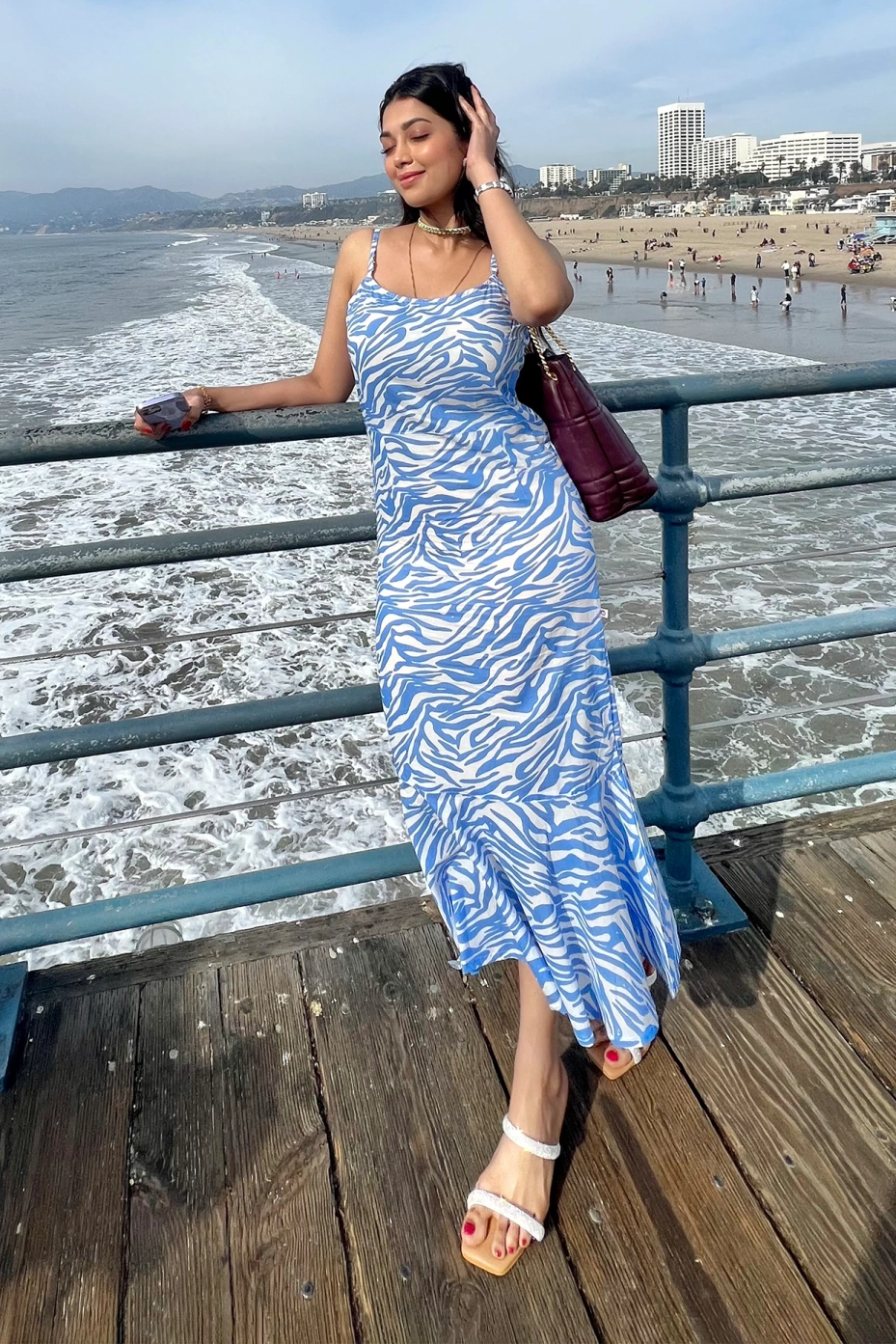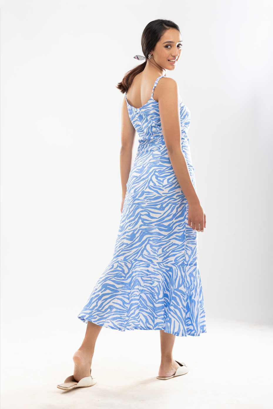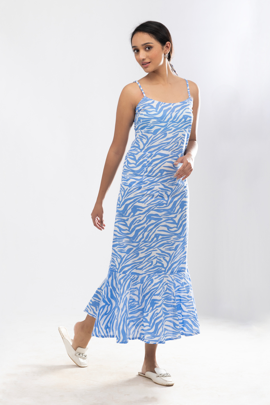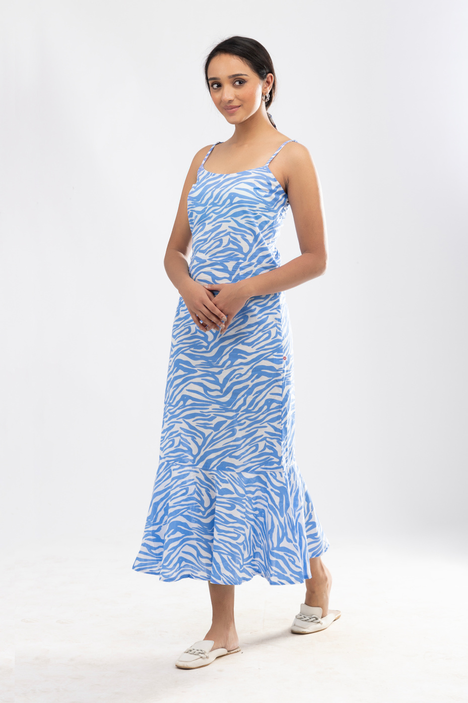 A blue mermaid cut dress features a fitted bodice with mermaid-style curves. It can be worn for parties and wedding celebrations. This blue dress is made up of cotton which is perfect for summer and spring seasons.