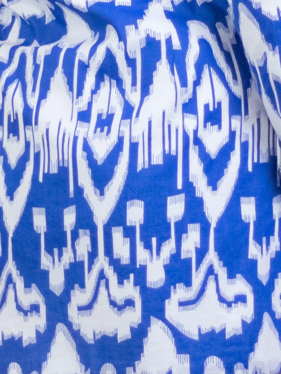 Ready to reimagine classic prints in modern silhouette? Make a statement in this blue all-over Ikat print cotton co-ord set. The blazer top features a lapel collar and full sleeves. The mini skort features two-sided pockets and a side tie-up. Crafted from pure cotton fabric, the co-ord set offers a flattering look, comfortable fit, and all-day ease - perfect for get-togethers or coffee dates.