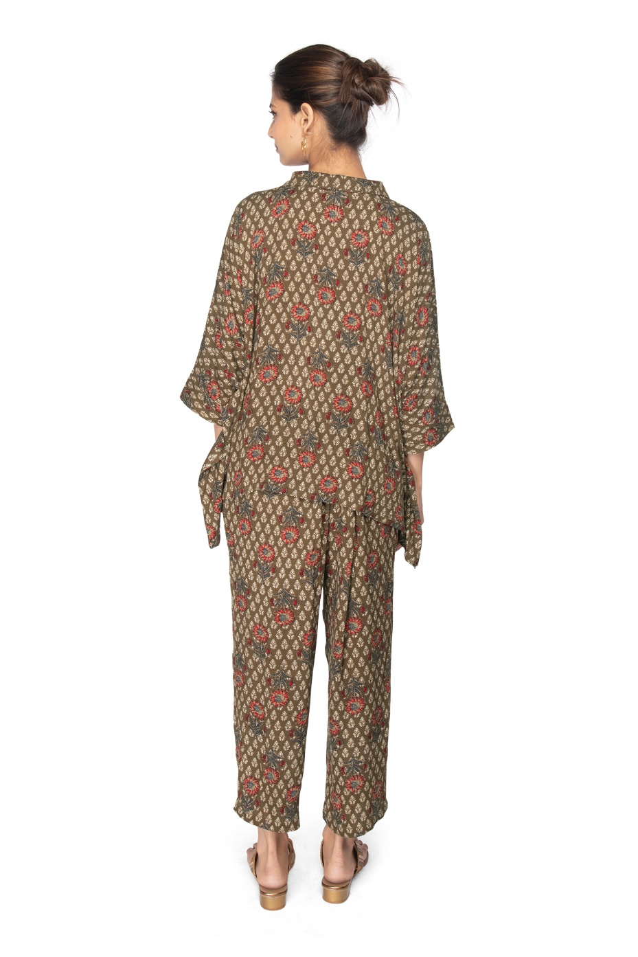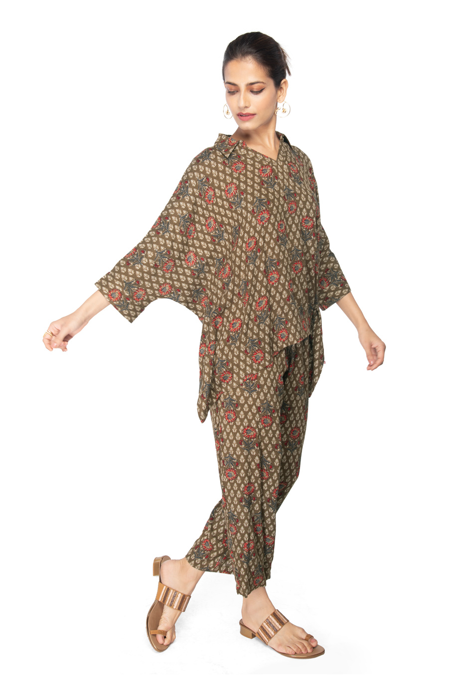 Green Viscose Shirt Style Kaftan Coord Set
