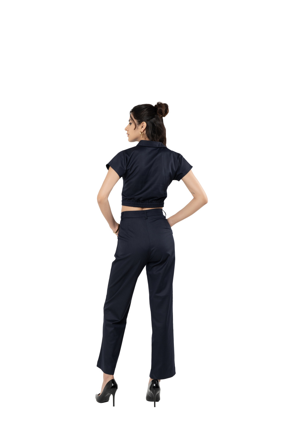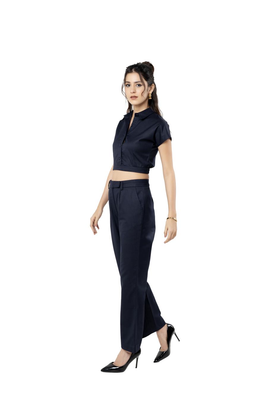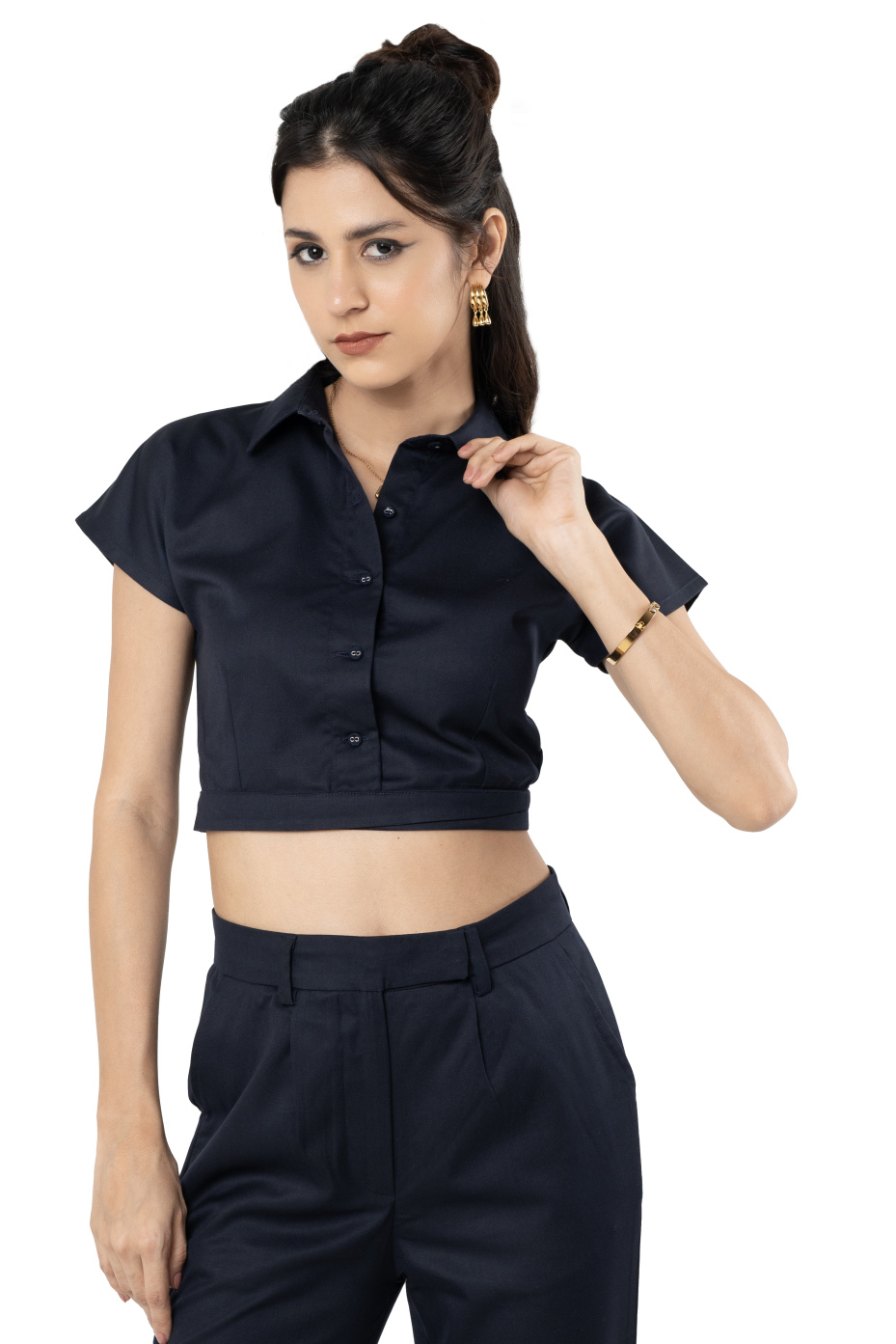 Indigo Crop Shirt and Straight Pant Co ord Set