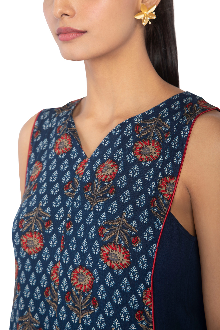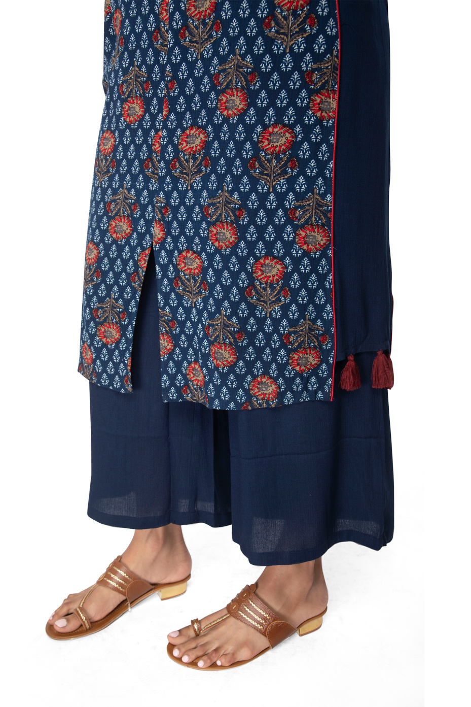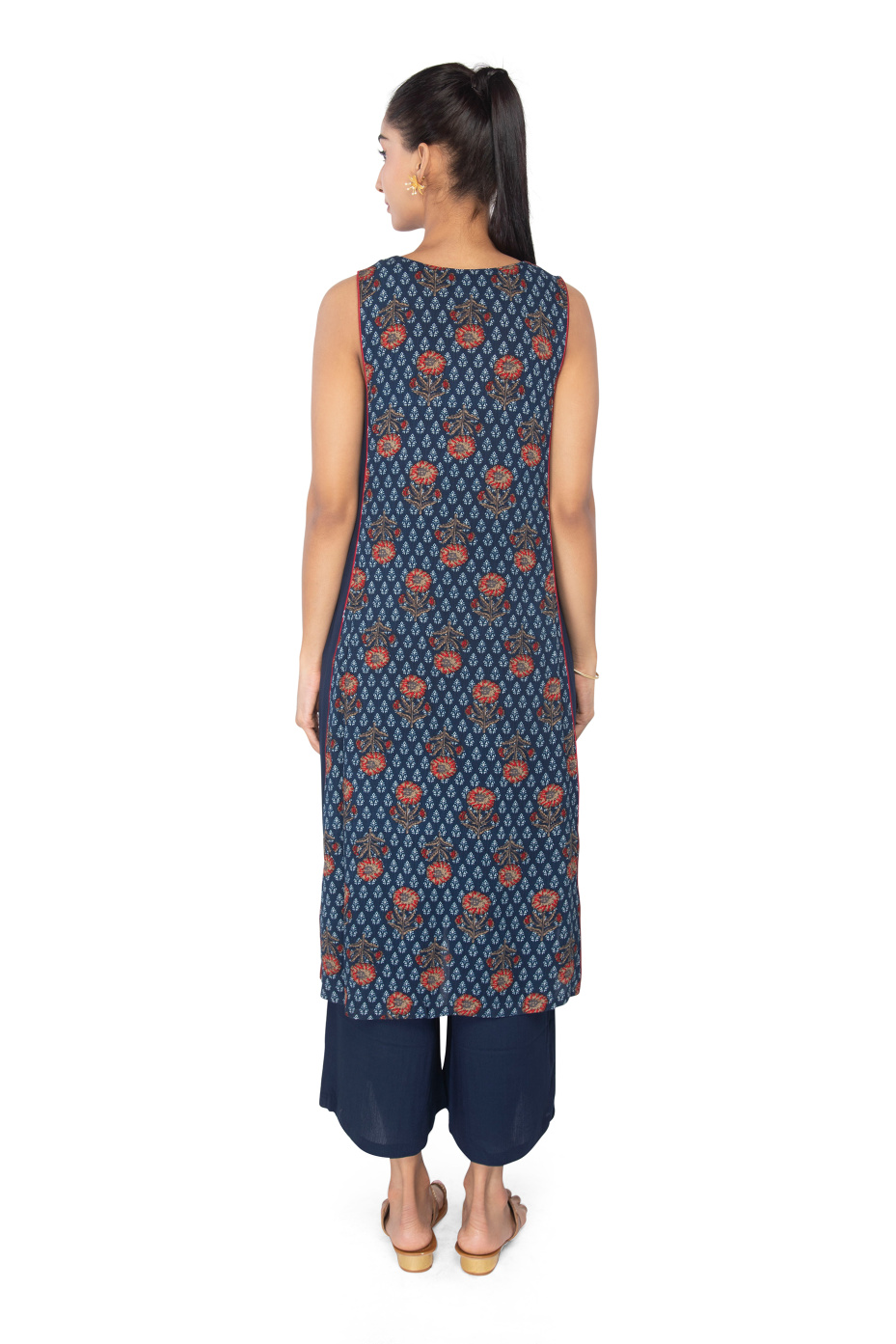 sIndigo Ethnic Indigo Paneled Kurta With Pant 2 Pcs Set