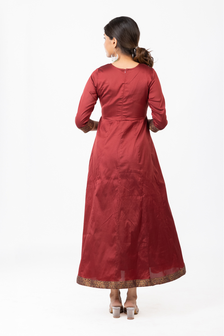 Maroon Anarkali Slit Open Kurta With Straight Pant 2 Pcs Set