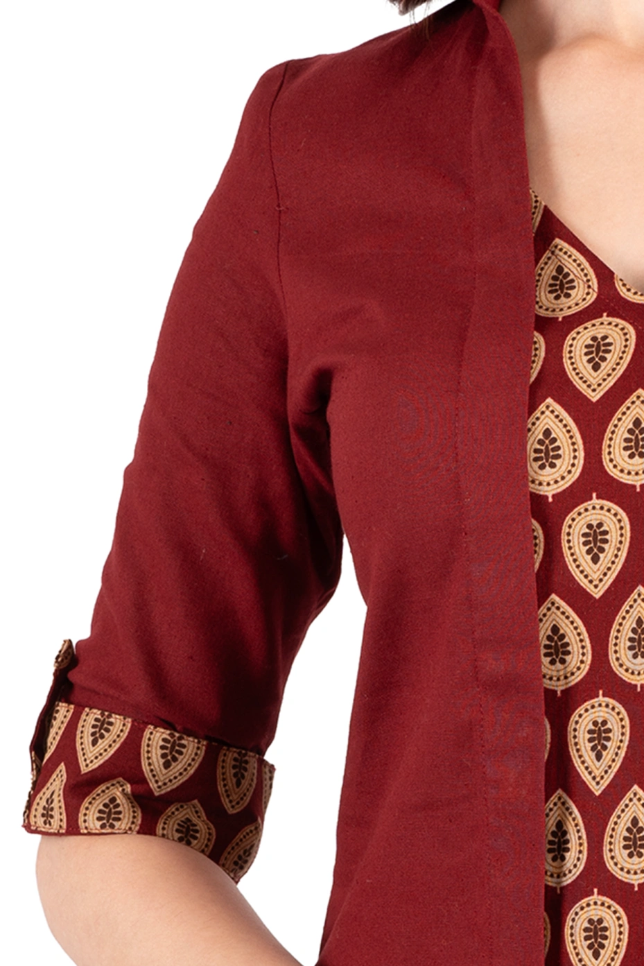 Step into a world of ethnic elegance and grace with this A-line kurta set. It features a stand collar, print detailing, and three-quarter sleeves. Crafted with cotton fabric, it ensures softness and long-lasting comfort. Pair it with heels, traditional earrings, and bangles for a puja ready look.