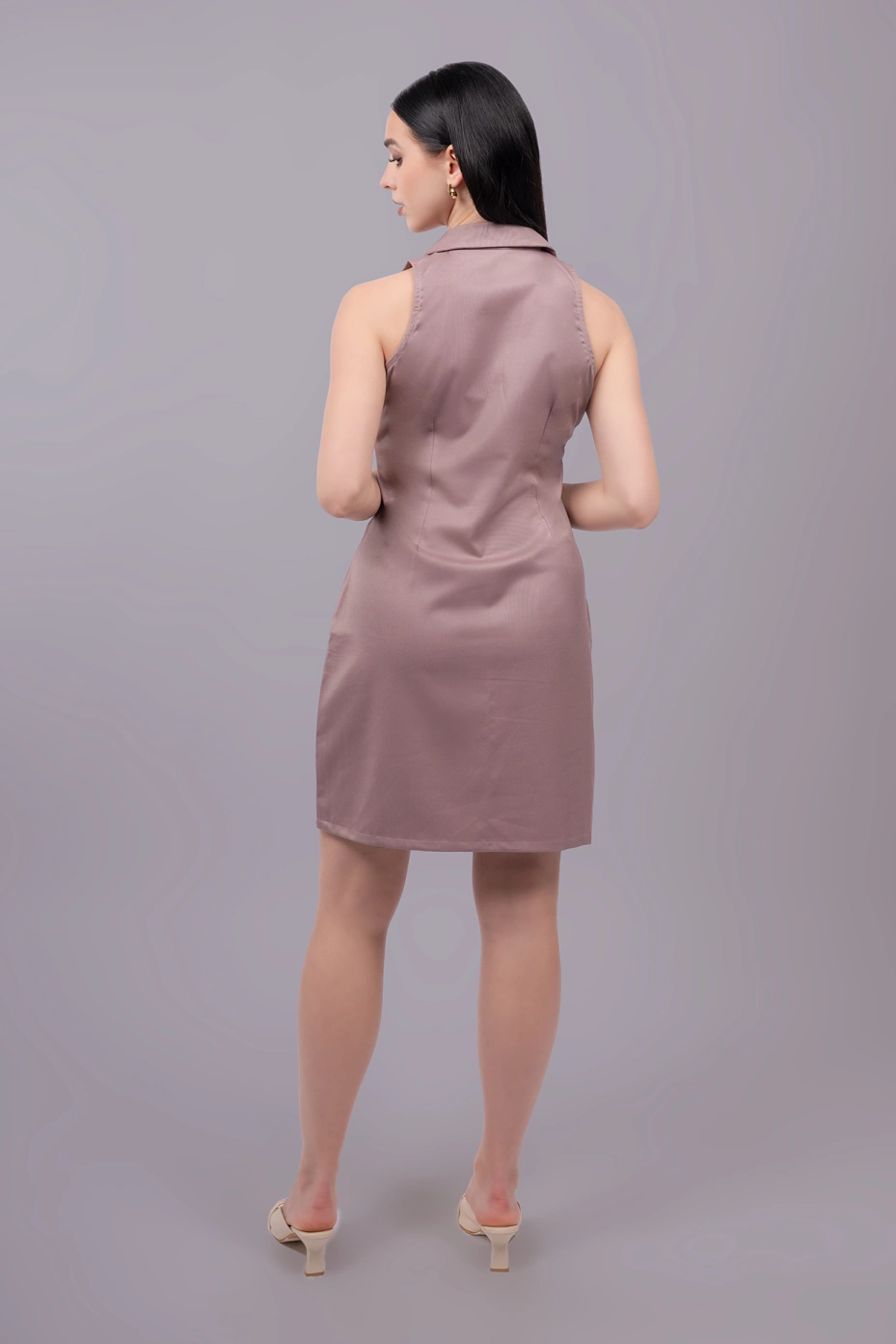 Mauve Formal Lapel Collar Sleeveless Shirt Dress