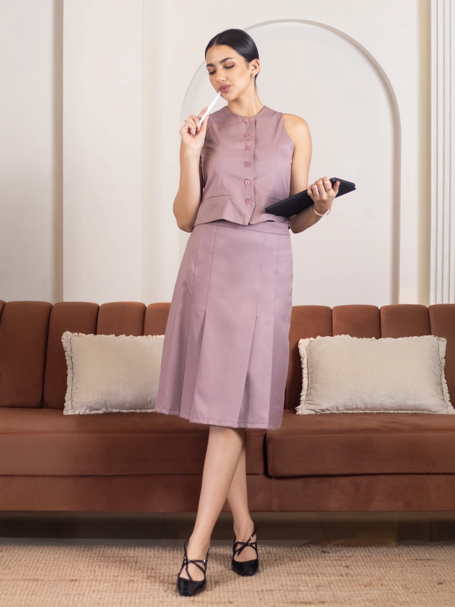 Pick this mauve formal waistcoat for women for an everyday office look.