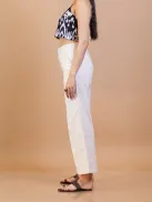 Off White Cotton Straight Fit Pants