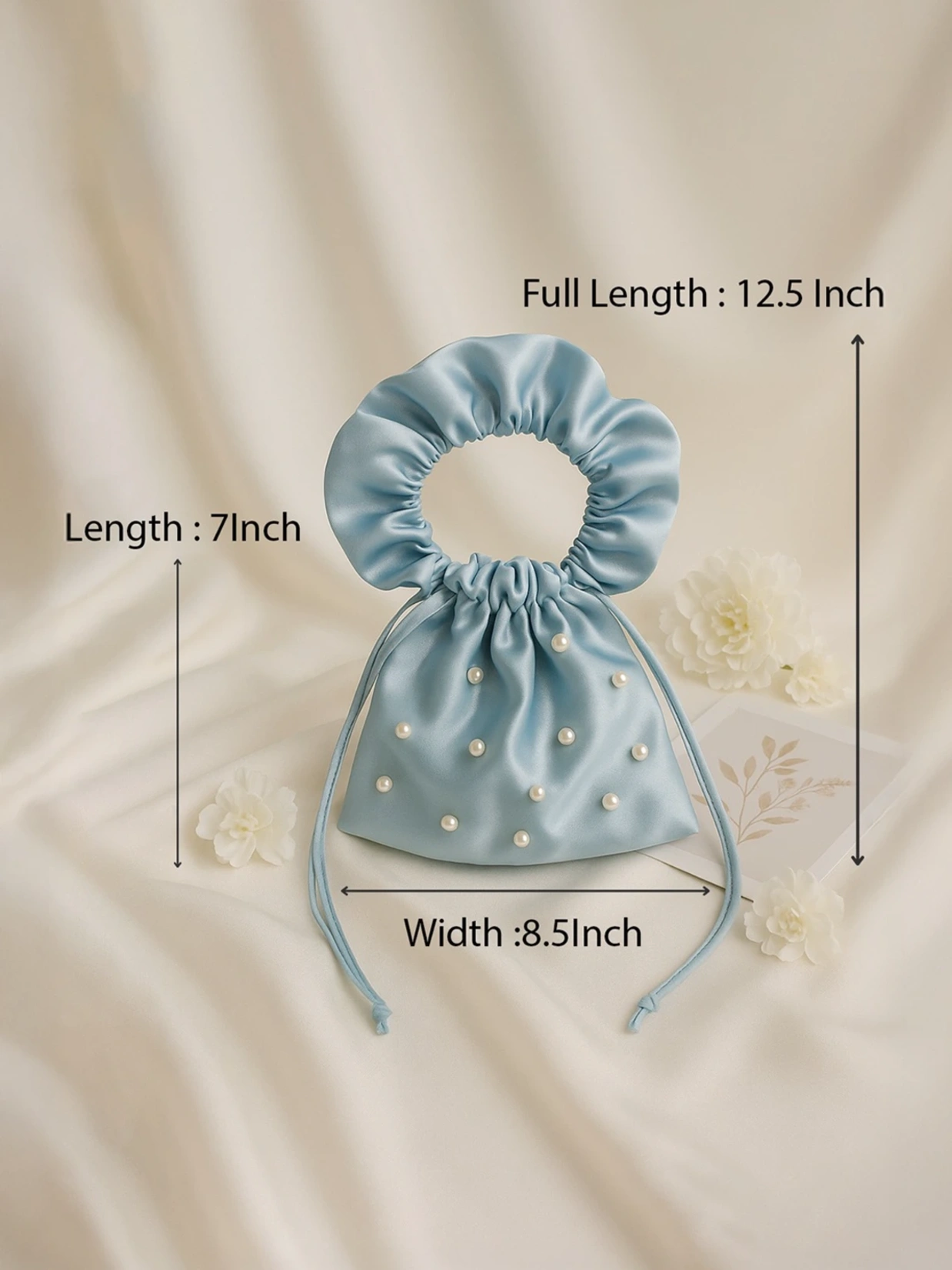 Style your pink satin potli bag with pearl detailing alongside ethnic or festive wear for a graceful accessory