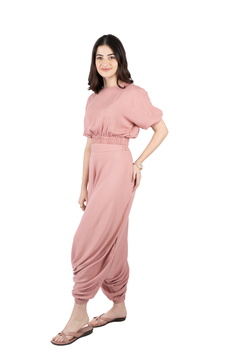 Pink Solid Dhoti Pants Co-ord Set With Tunic Top