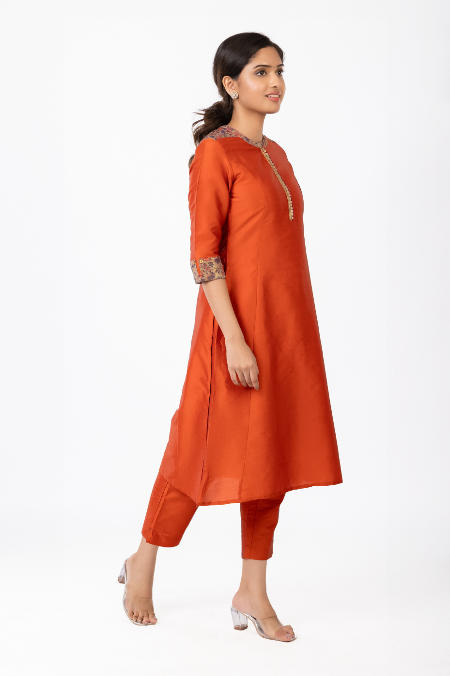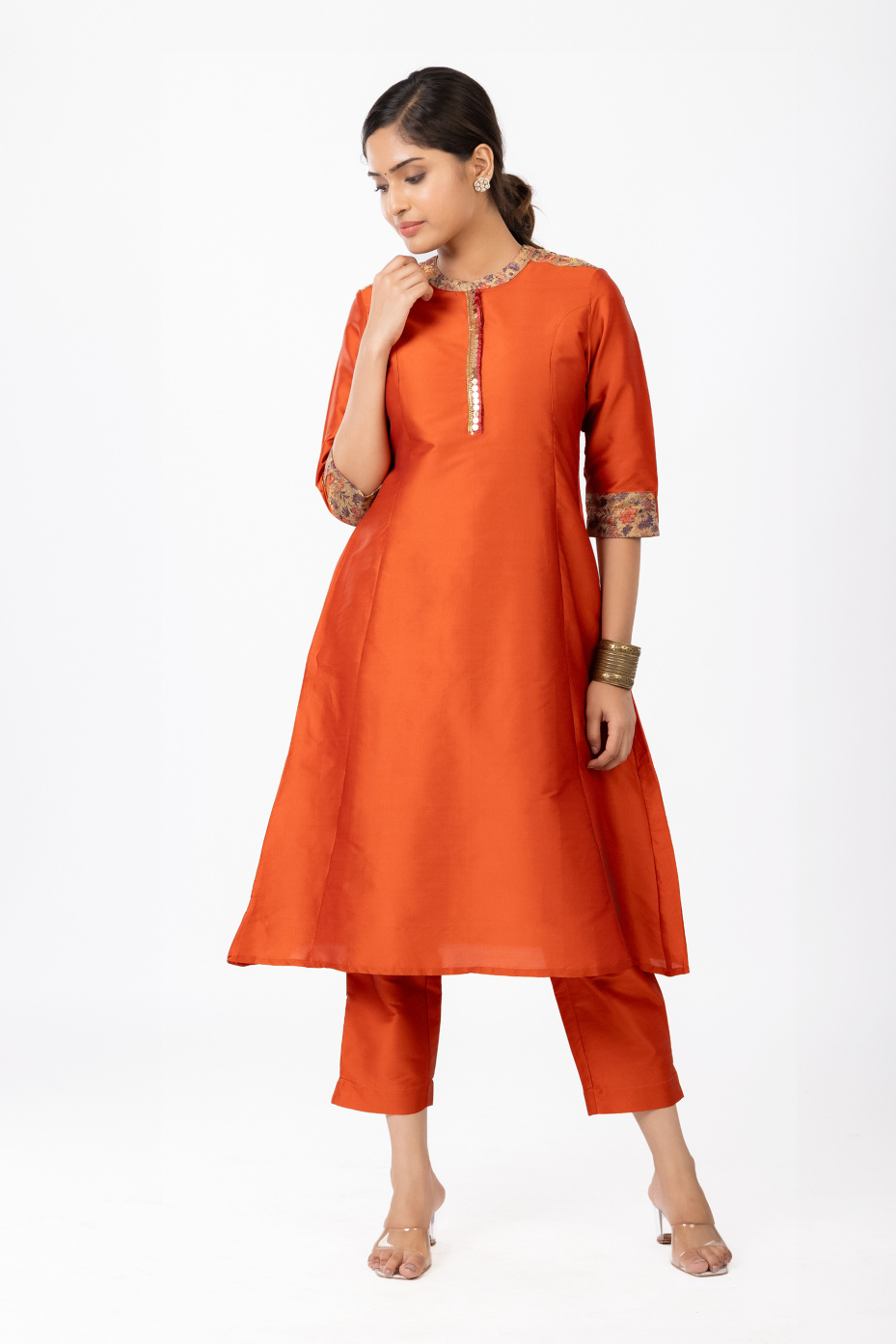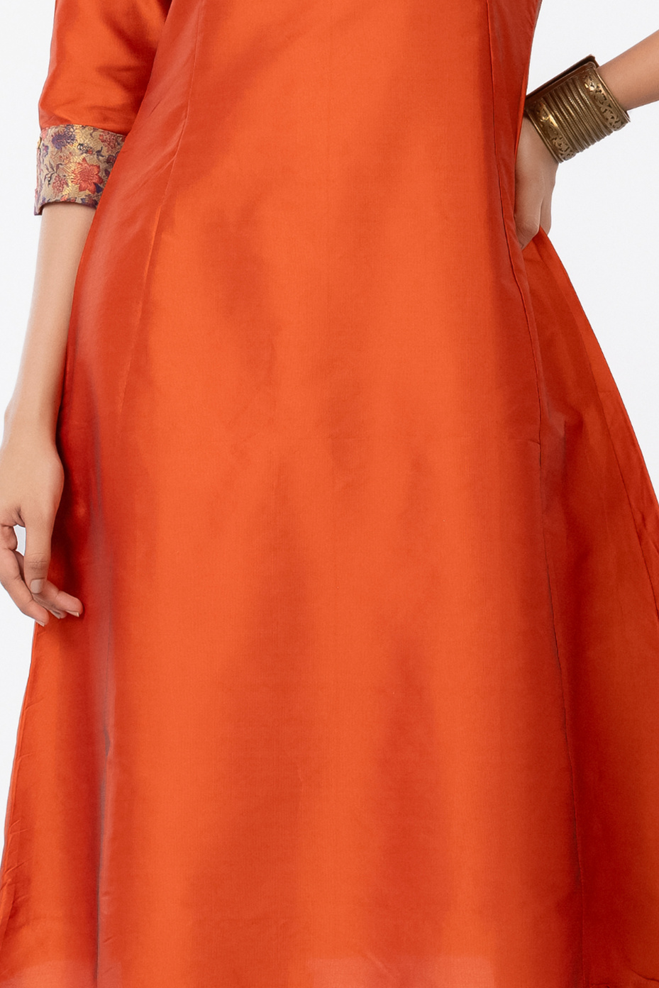 Rust Orange Silk Cotton Princess Cut A-line Kurta