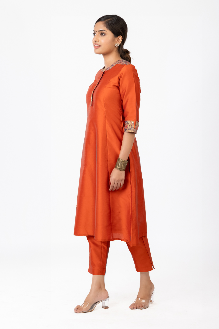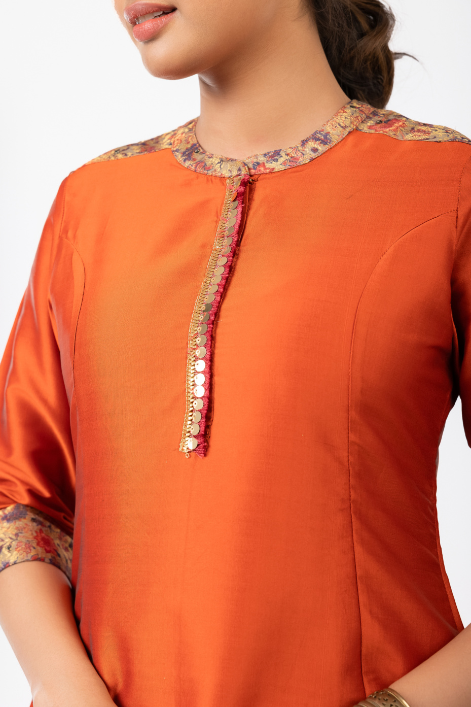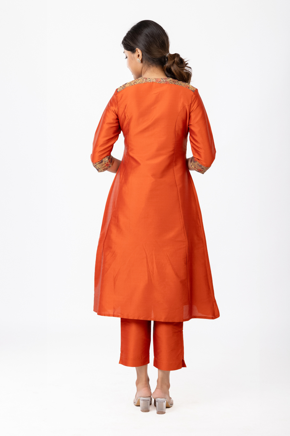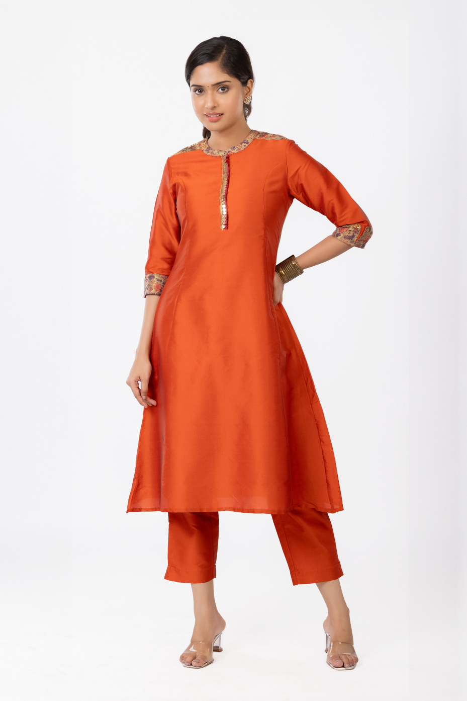 Rust Orange Silk Cotton Princess Cut A-line Kurta
