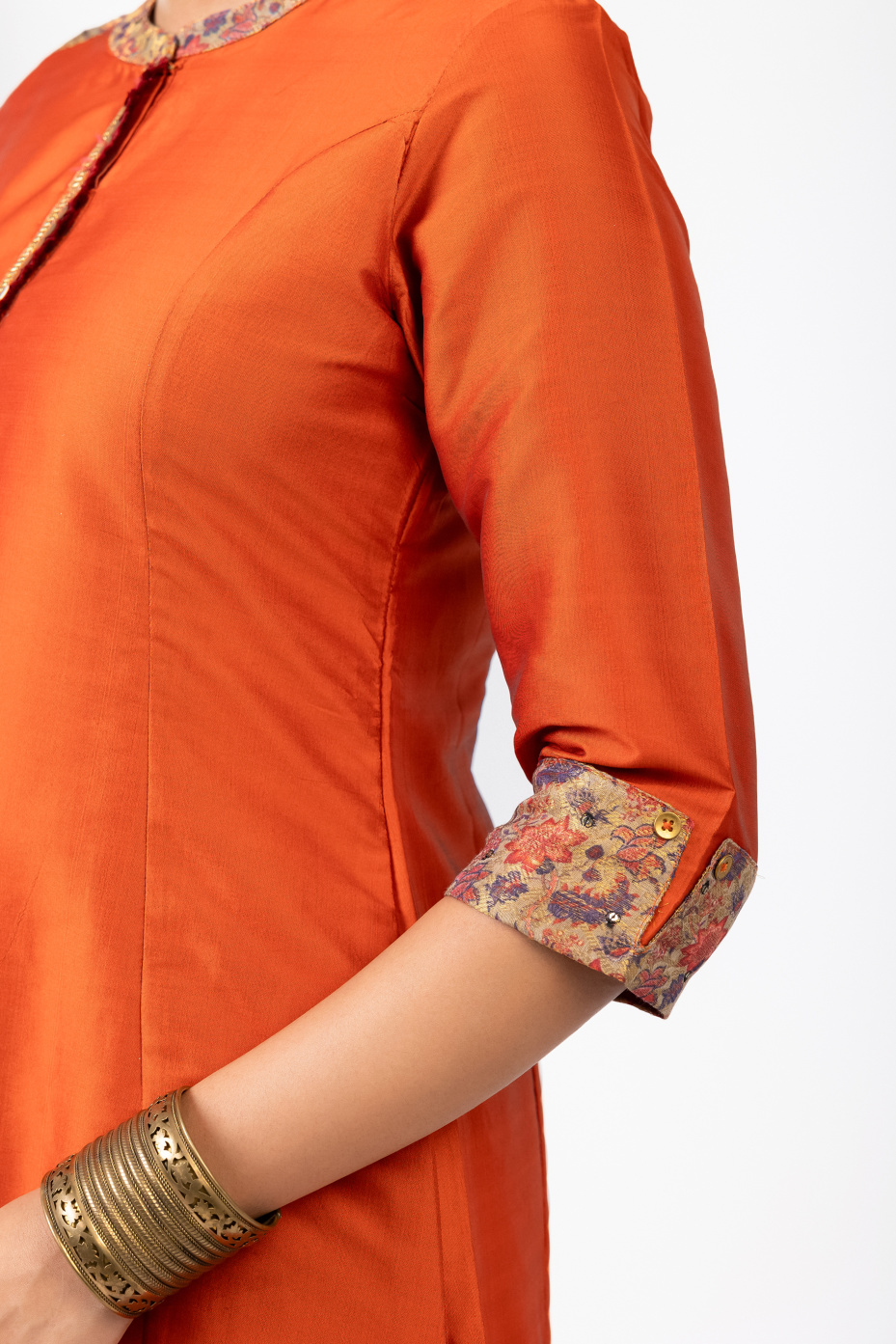 Fabric: Cotton Silk | Color: Orange | Wash Care: Delicate Machine Wash