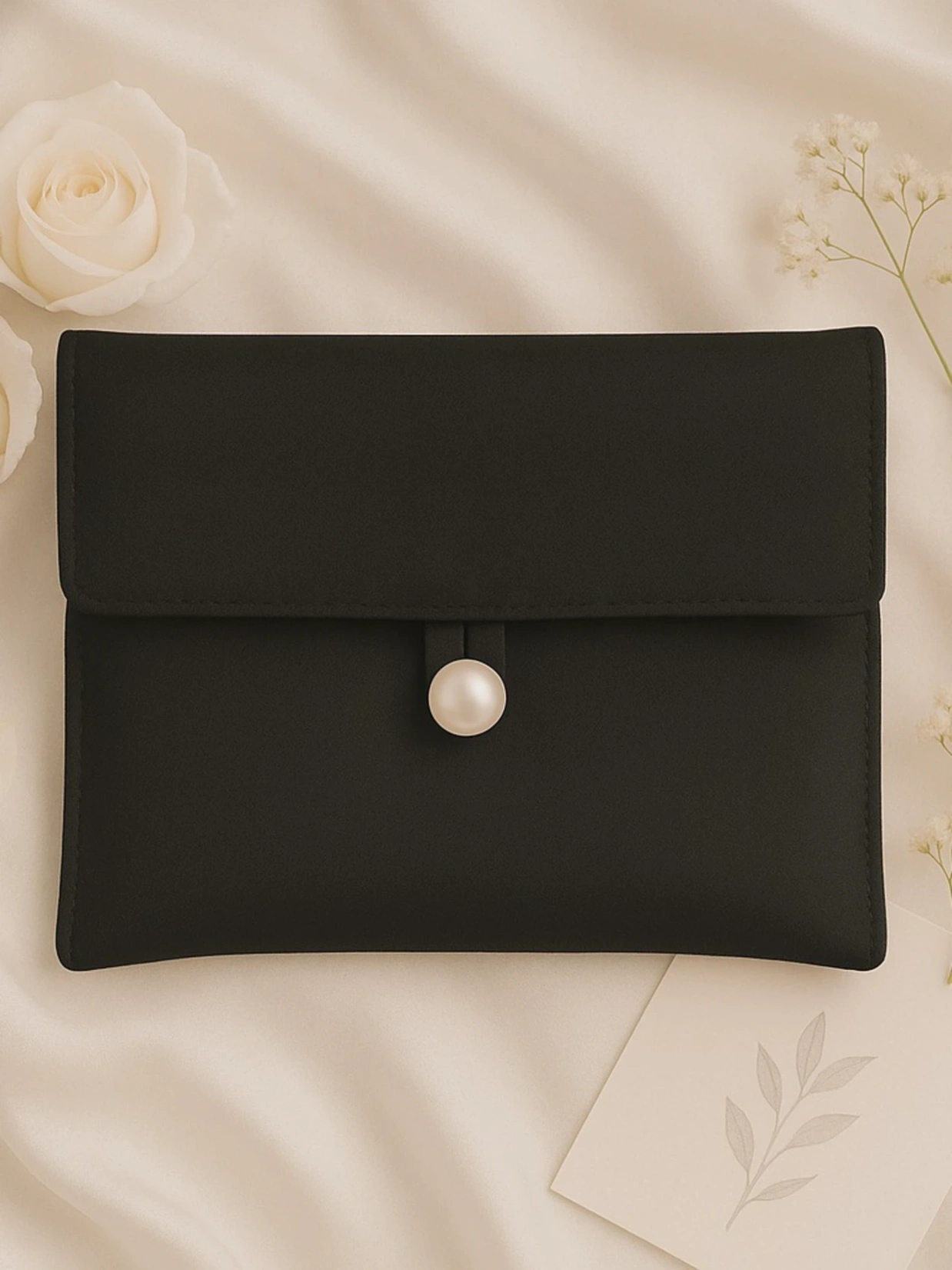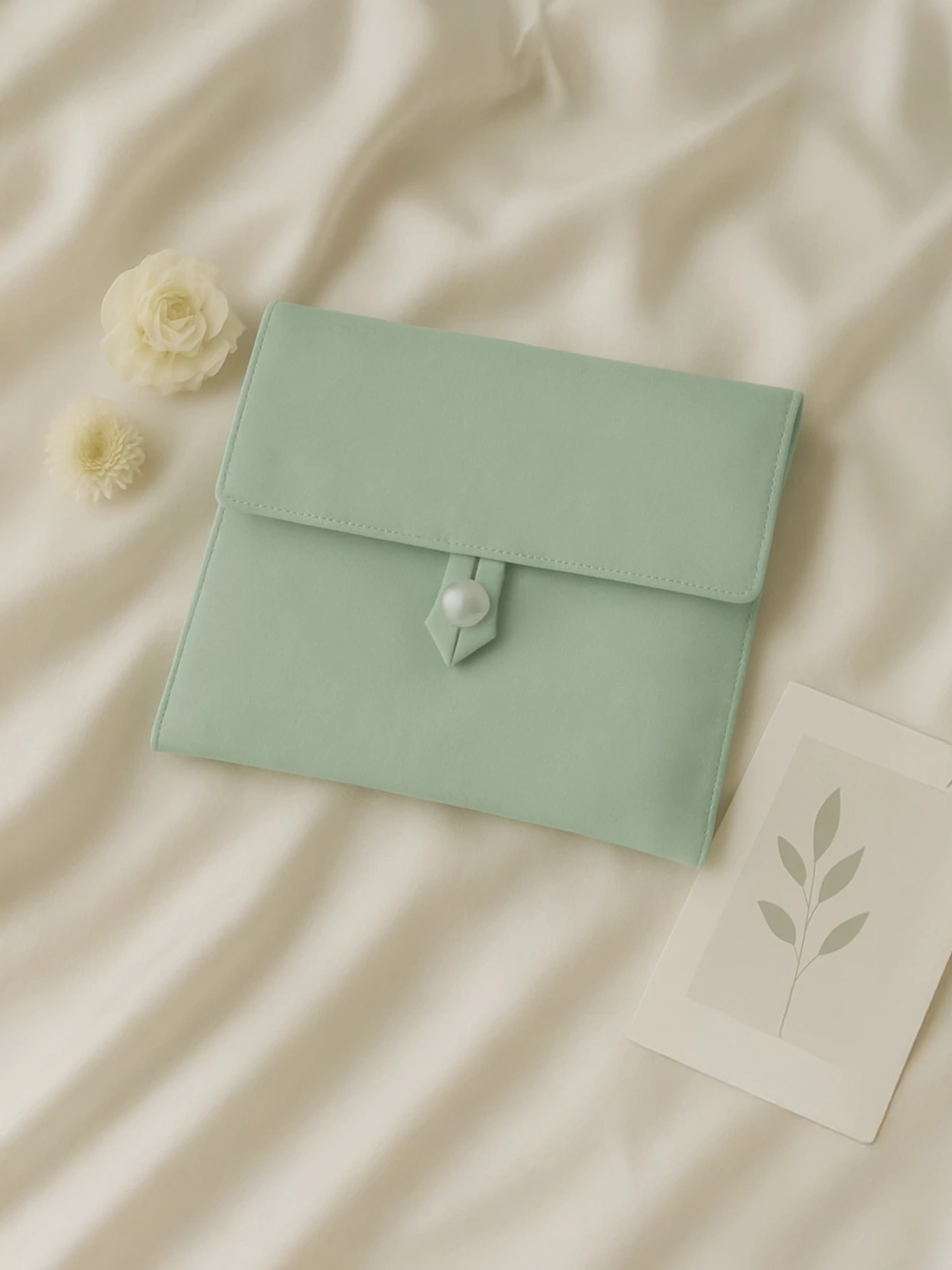Keep your essentials organized with our sanitary pouch combo, featuring elegant pearl detailing. Available in classic green, blue, and black shade, these compact pouches are perfect for carrying sanitary products or other small must-haves, combining everyday functionality with minimal charm.