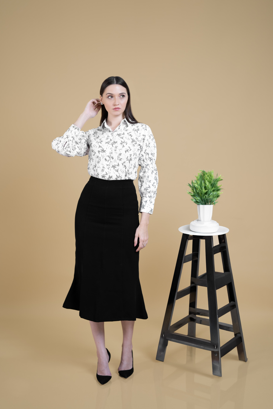 Bottoms: Pair it with tailored black trousers, chinos, slim-fit jeans, or a pencil skirt for a polished look. For a relaxed vibe, try A-line skirts, pleated pants, or stylish culottes.