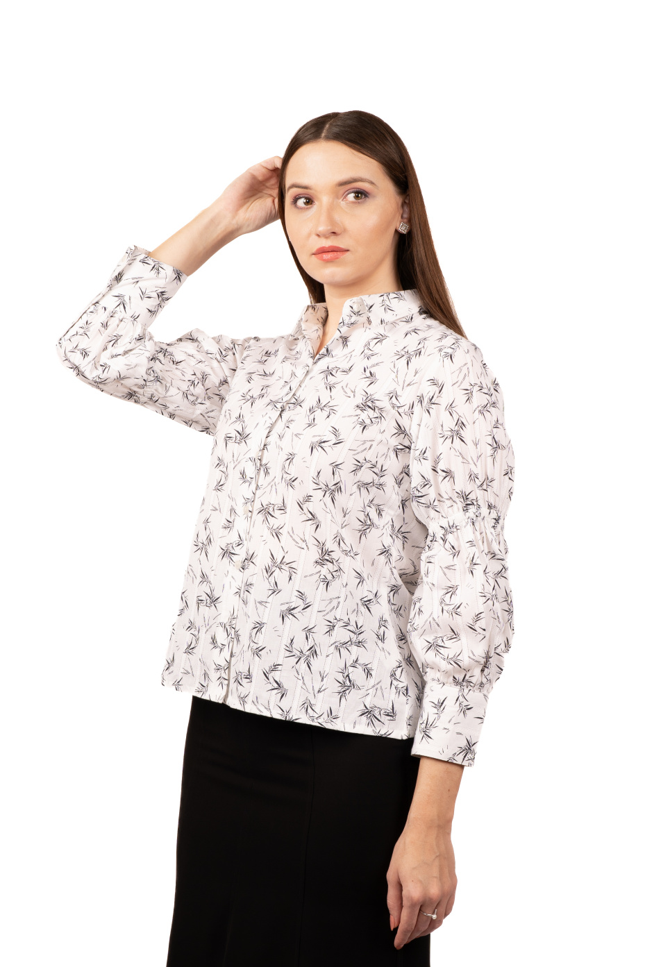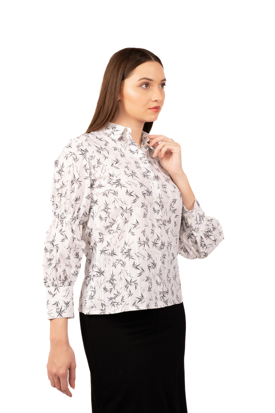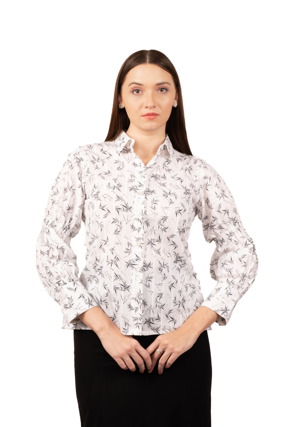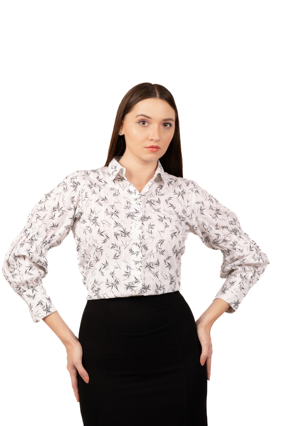 Look professional and stylish in this white printed formal shirt. It features a floral print, a collared neck, and long sleeves. Discover the perfect blend of comfort and style in this cotton shirt.