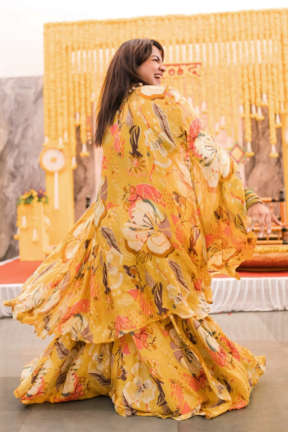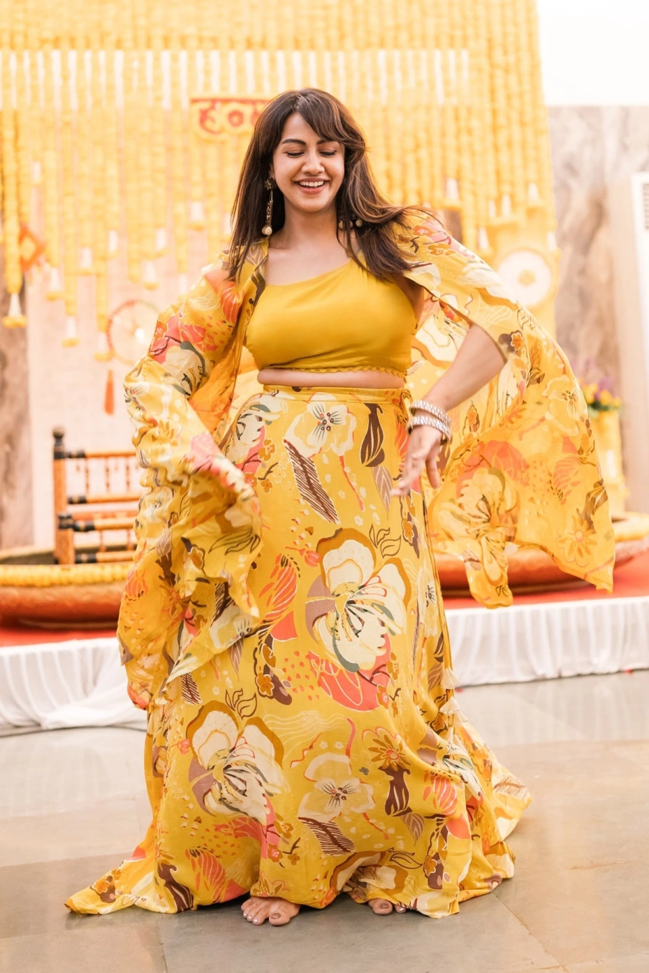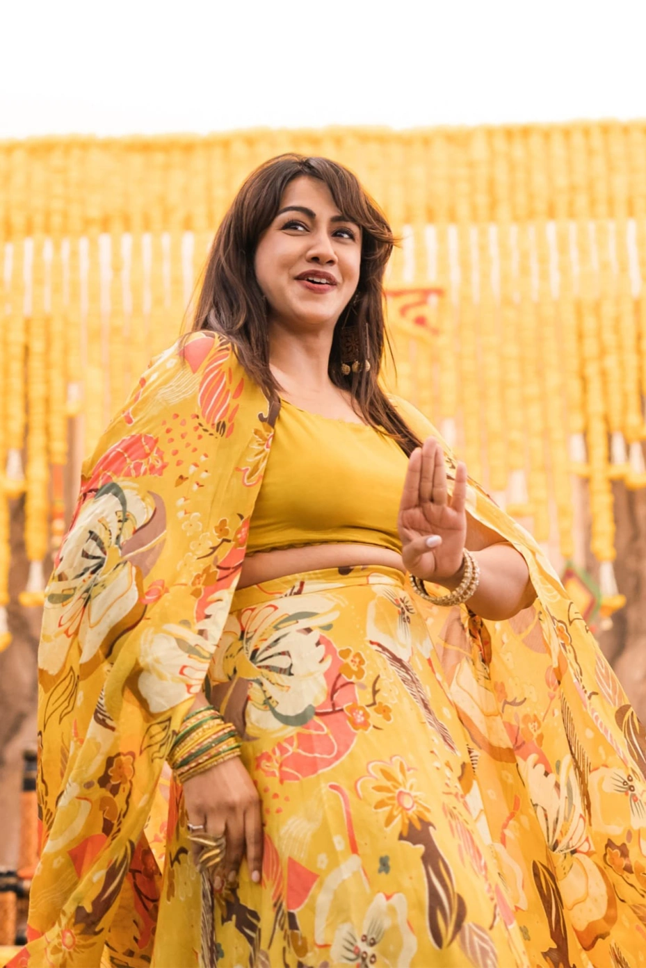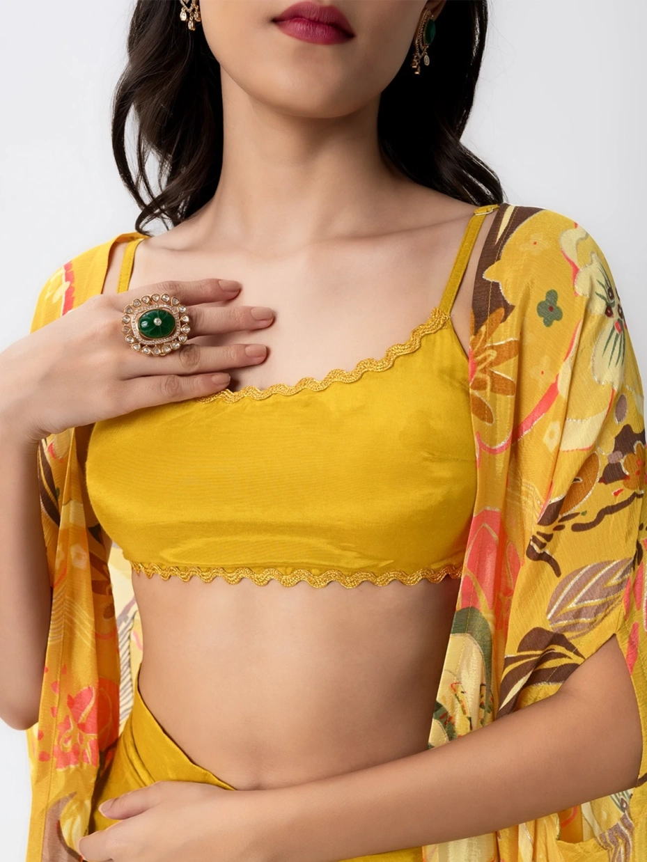 Yellow Floral Lehenga With Shrug