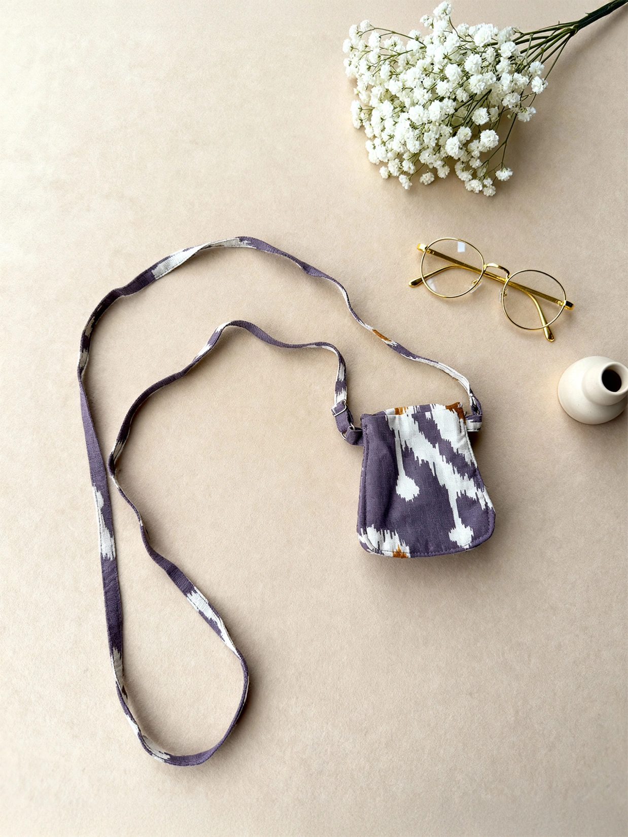 Yellow Ikat Printed Mini Sling Bag